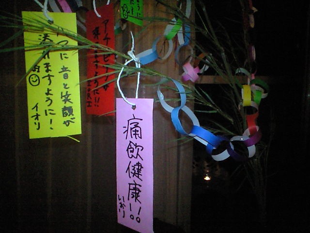 そうしていると、すっきりしない天気にイラついた彦星と織姫が痴話喧嘩でも始めたのか、アンプから聞いたこともないアブね~異音が出始めたので、弾くのをやめました。